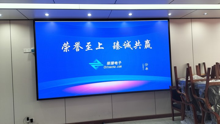本項目案例是我公司(榮臻電子)在吉林某單位會議室安裝的一個P2.5小間距全彩顯示屏項目,項目的具體展示效果如下: